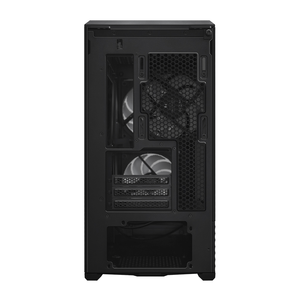 140mm ARGBファンを2基フロントに標準搭載し、コンパクトな筐体ながら、華やかなルックスと強力なエアフローを実現しています。