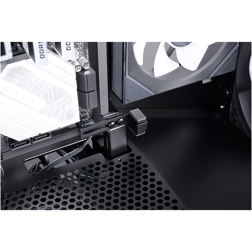 グラフィックカードは長さ400mmまでサポート。大型のグラフィックカードを支えるため、調整可能なたわみ防止ブラケットを備えています。ケーブル管理もしやすく、デザイン性と実用性を兼ね備えたPCケースです。